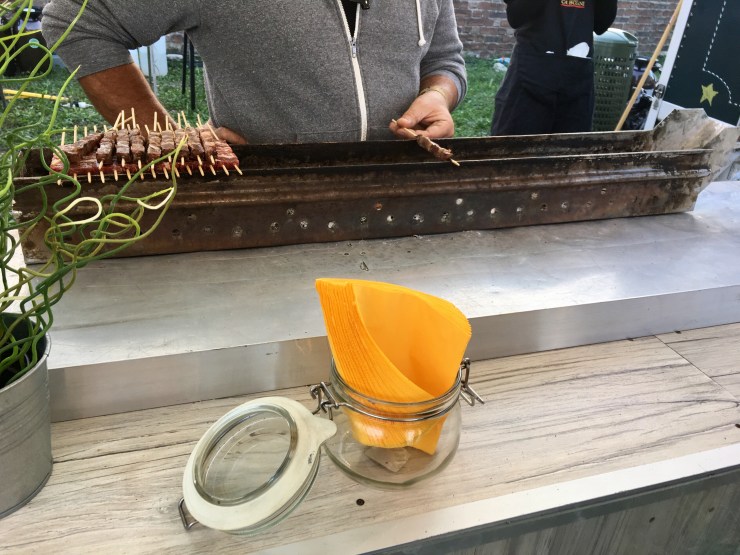來自意大利中部的羊肉串 Arrosticini,角切狀肥瘦各半,撒上香料及鹽巴燒烤