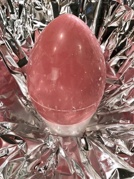 今年收到兩隻復活蛋,左邊的是320g,比正常出奇蛋(20g)大16倍,右邊的巨蛋則有 1公斤!比正常大50倍,比我的頭還要大,蛋內會有小驚喜,如小玩具或鎖匙扣之類的小東西。