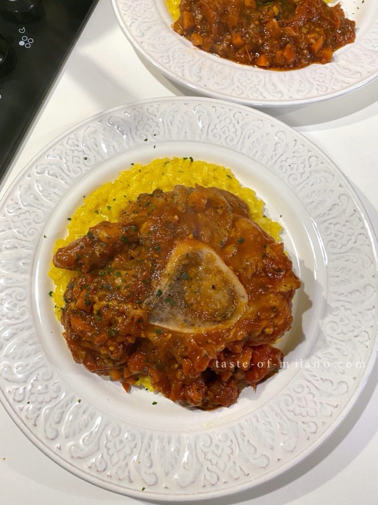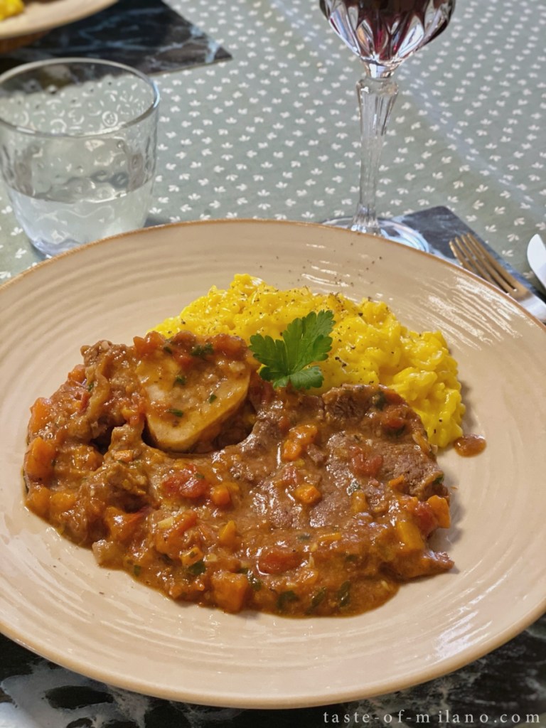 這道菜也可以分開成兩道菜,米蘭餐廳餐牌中的常菜:米蘭燉牛膝 Ossobuco alla Milanese 及 米蘭燉飯 Risotto alla Milanese