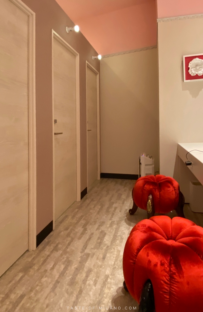 - 只限女性,裝修設計女性化,碎花牆紙、絲絨傢具,很有品味