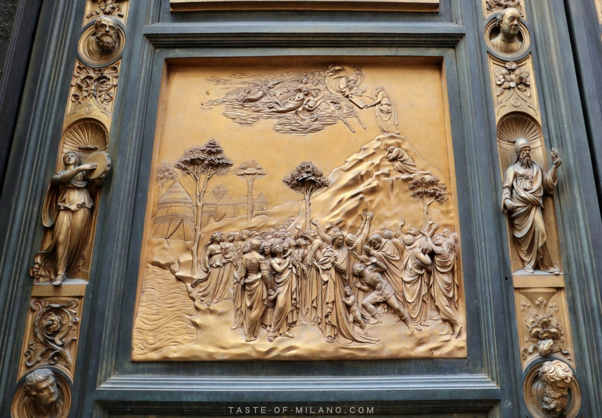 洗禮堂有兩個焦點,第一是被米高安哲羅稱讚為「天堂之門」的東面鍍金大門,第二是洗禮堂內的大型穹頂馬賽克鑲嵌畫。