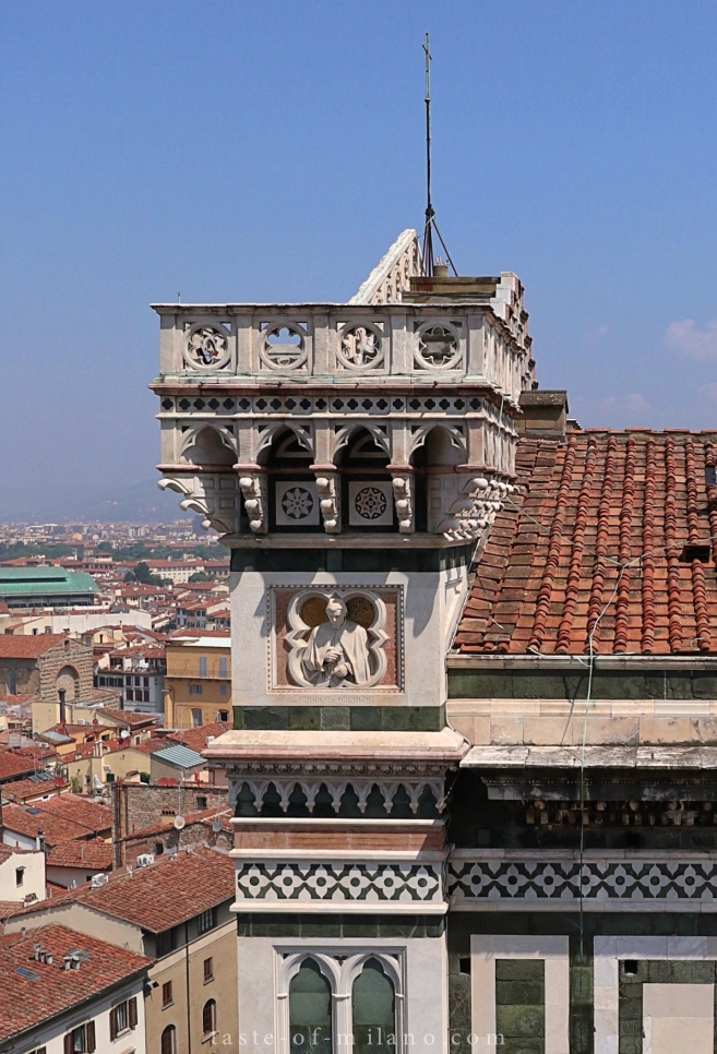 第一站是預約好時間的百花大教堂,然後再登喬托鐘樓。不要以為登完百花大教堂就夠了,其實喬托鐘樓才是戲肉,因為這裡可以近距離在高處一睹偉大的百花大教堂巨型穹頂!