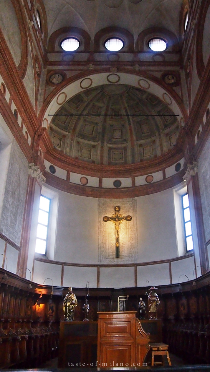 第一任的建築師 Guiniforte Solari 所設計的教堂帶有後哥德式風格,教堂內的設計以尖拱為主,直至新公爵 Ludovico il Moro 的重建計劃,才把文藝復興元素加入,而教堂後部份的聖殿更在僅僅完成一年後被拆掉重建。