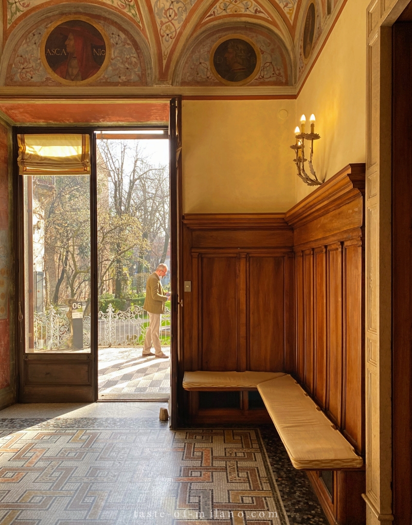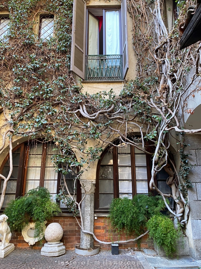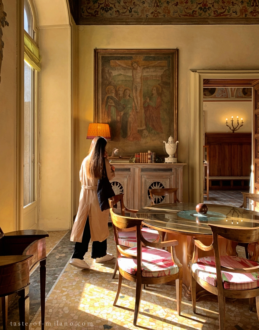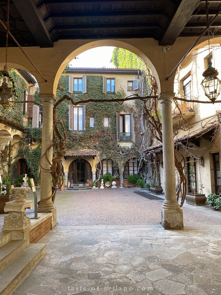 聖母恩寵教堂因達文西名作「最後的晚餐」而聞名,而位於這個著名景點的一街之隔,有另一個隱藏景點,這一幢經歷數個世紀的私人大宅,現今成為一所博物館,後花園內保存了一片「達文西的葡萄園」,大宅由20世紀米蘭的重要建築師 Piero Portaluppi 負責重建,因此也有建築愛好者慕名而來。