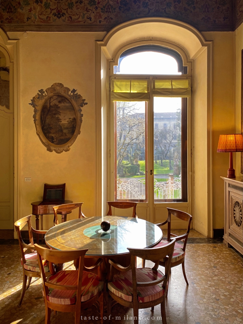 大客廳的窗戶對著外面由 Portaluppi 設計的巴洛克風格花園