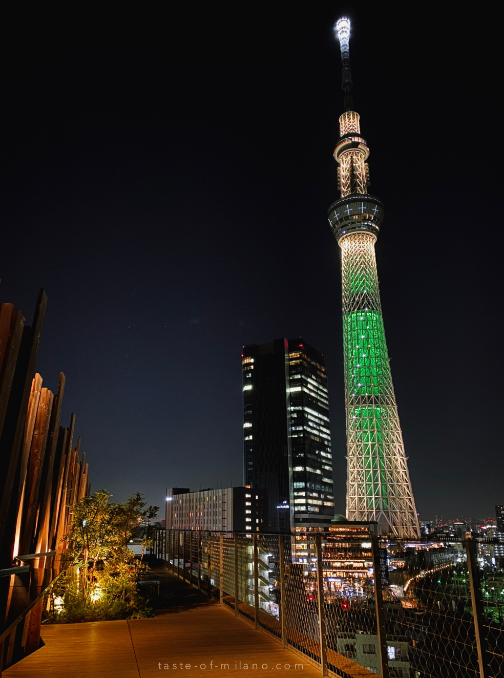 由日本知名建築師隈研吾負責整棟大樓的設計,包括大廈外牆、室內設計,甚至連傢具也是大師的作品。此外,酒店最大特色是其所在地,位於景點晴空塔附近,部份房間就是它的景觀,而天台更特別開放給住客,就算房間內看不到,也可以到天台欣賞。