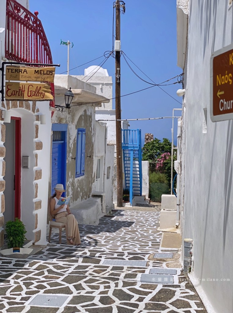 依山而建的舊城 Plaka 是 Milos 的首府,有著傳統希臘小島的藍白建築,白色迷宮裡也集中了不少餐廳及小商店,往上走會找到另一景點威尼斯城堡,是看日落的最佳位置。